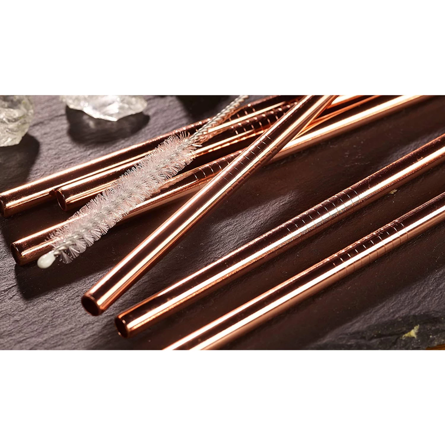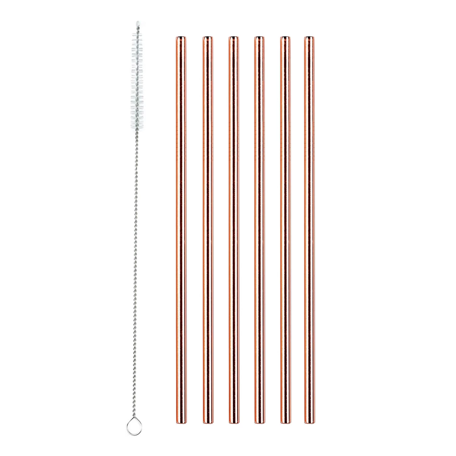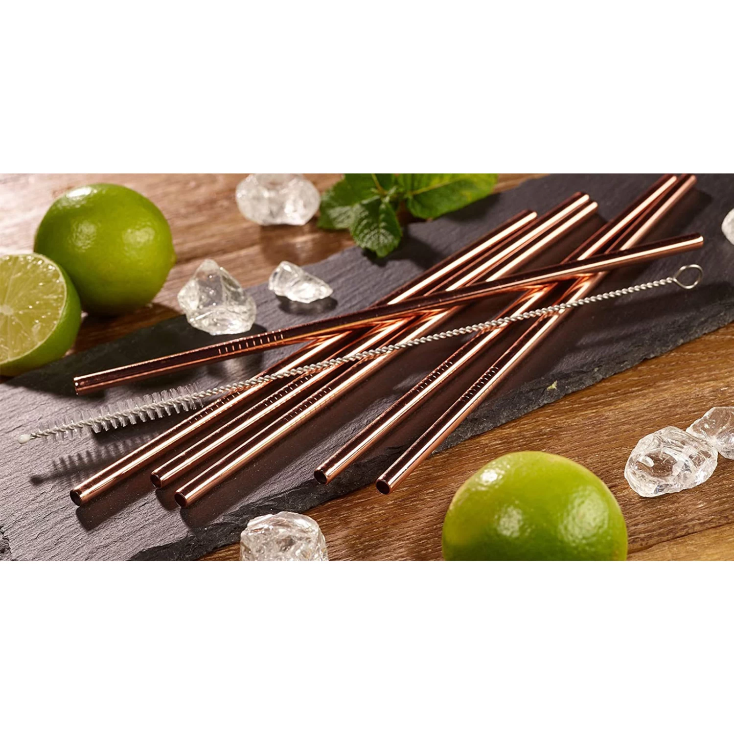 7 Tlg. Set Edelstahl Trinkhalme Inkl. Reinigungsbürste In Kupfer